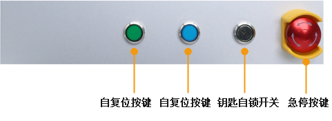 | 按鍵 | KZ.JKB.00BL00AJ-001 | 4標準按鍵, 急停(雙常閉)+綠色自復位(一常開,帶24V LED燈)+藍色自復位(一常開,帶24V LED燈)+鑰匙自鎖開關(一常開, 帶24V LED燈) |